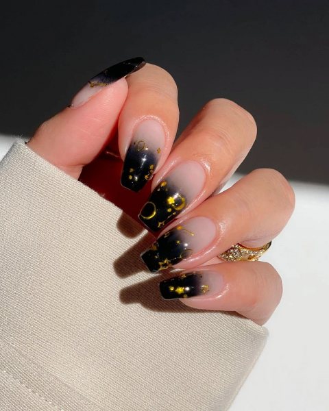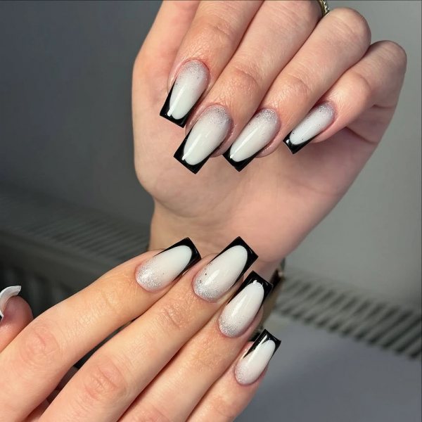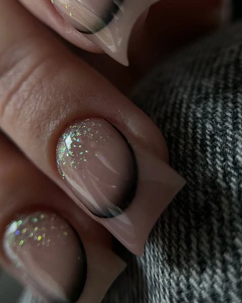 Самый универсальный вариант — переход от черного к прозрачному. Темный оттенок постепенно растворяется, создавая легкую дымку. Такой дизайн выглядит стильно и не перегружает образ.