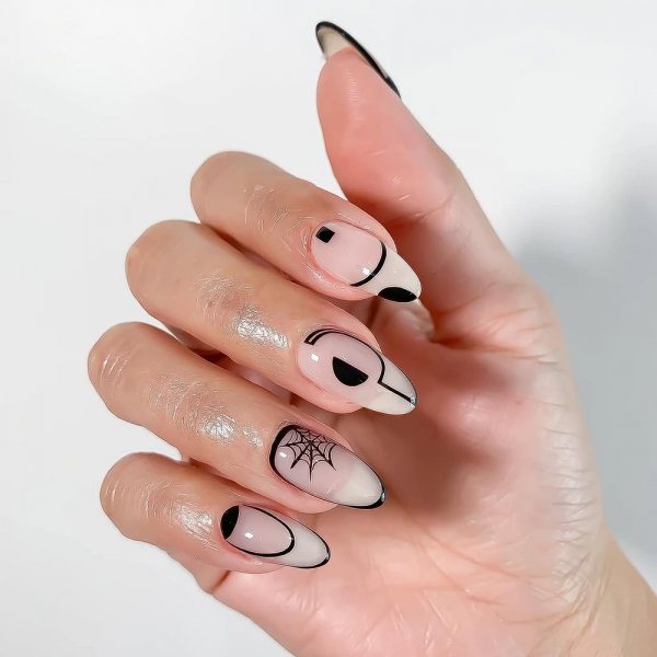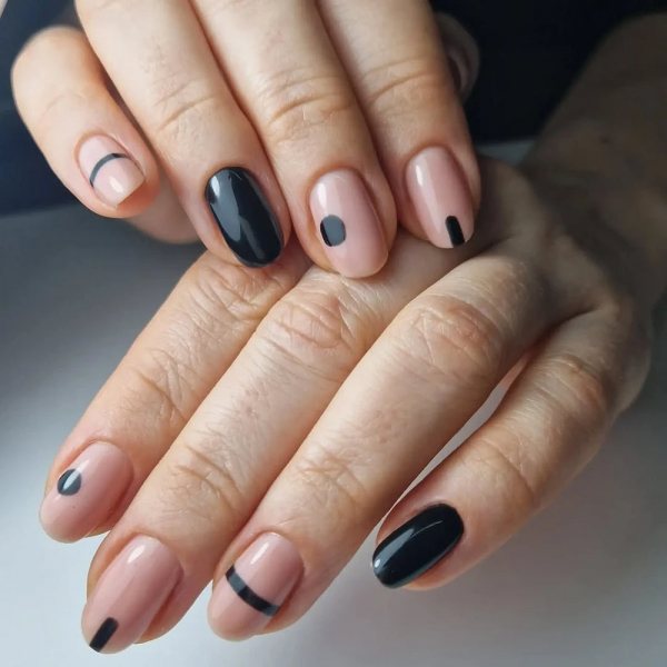 В теплый сезон я выбираю прозрачную или белую базу и добавляю тонкие черные элементы. Полоски, треугольники, абстрактные формы. Чем жарче на улице, тем больше свободного пространства оставляю на ногте. Это правило реально работает.