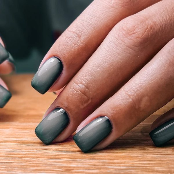 Если хочется насыщенности, я выбираю сочетание черного с бордовым, темно-синим или изумрудным. Главное, чтобы второй оттенок был глубоким. Иначе можно получить не эффект, а грязный подтон. Плавность перехода здесь решает все — мастера обычно используют губку или аэрограф для мягкого растушевывания.